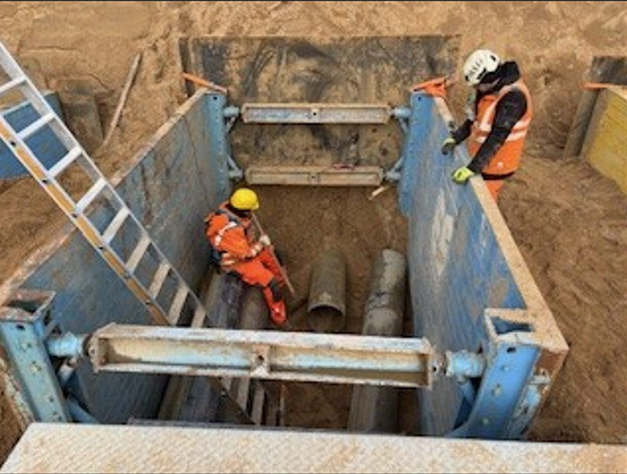 - Leitungs- und Rohrverlegearbeiten in tiefer Baugrube (Verbau)