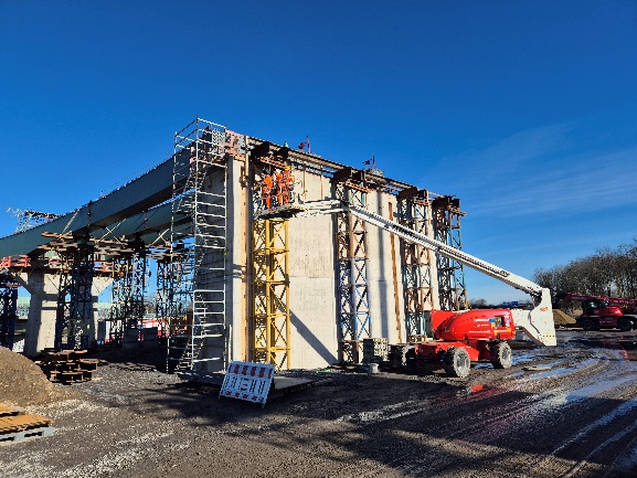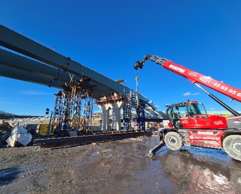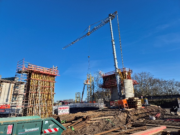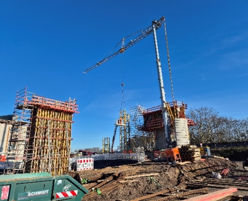 • den parallelen Einsatz zahlreicher Gewerke – vom Erd- und Straßenbau über Brückenbau bis zu Gerüstbau- und Montagearbeiten.