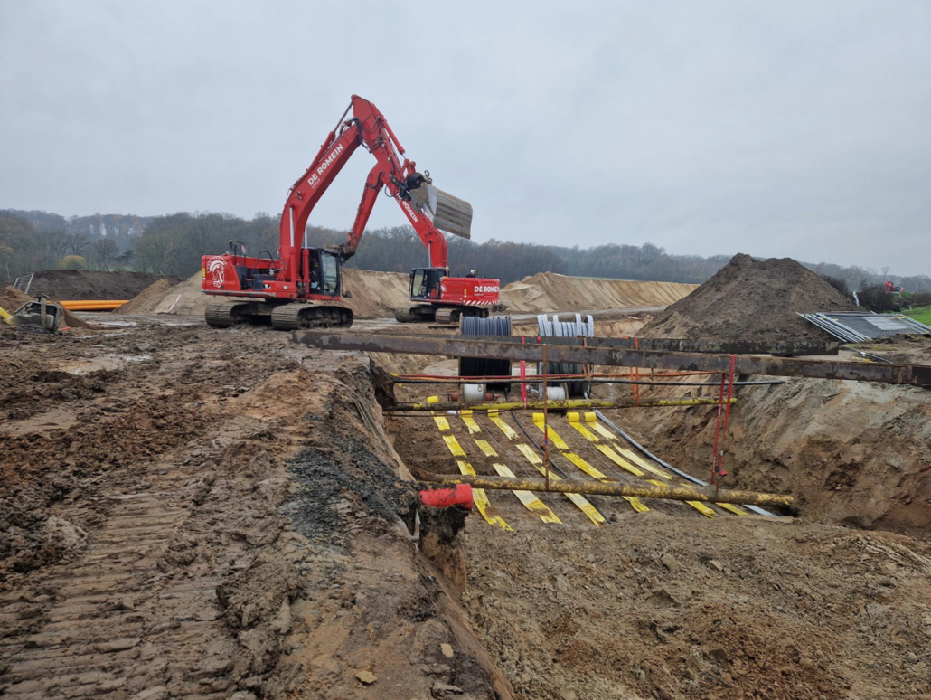Ein zentrales Element war die Bereitstellung von Flüssigboden, der direkt auf der Baustelleneinrichtungsfläche vor Ort produziert und anschließend zu den jeweiligen Einsatzorten transportiert wurde. Dies führte zu einem deutlich erhöhten logistischen Aufkommen und besonderen Anforderungen an sichere Transport- und Verkehrsabläufe.